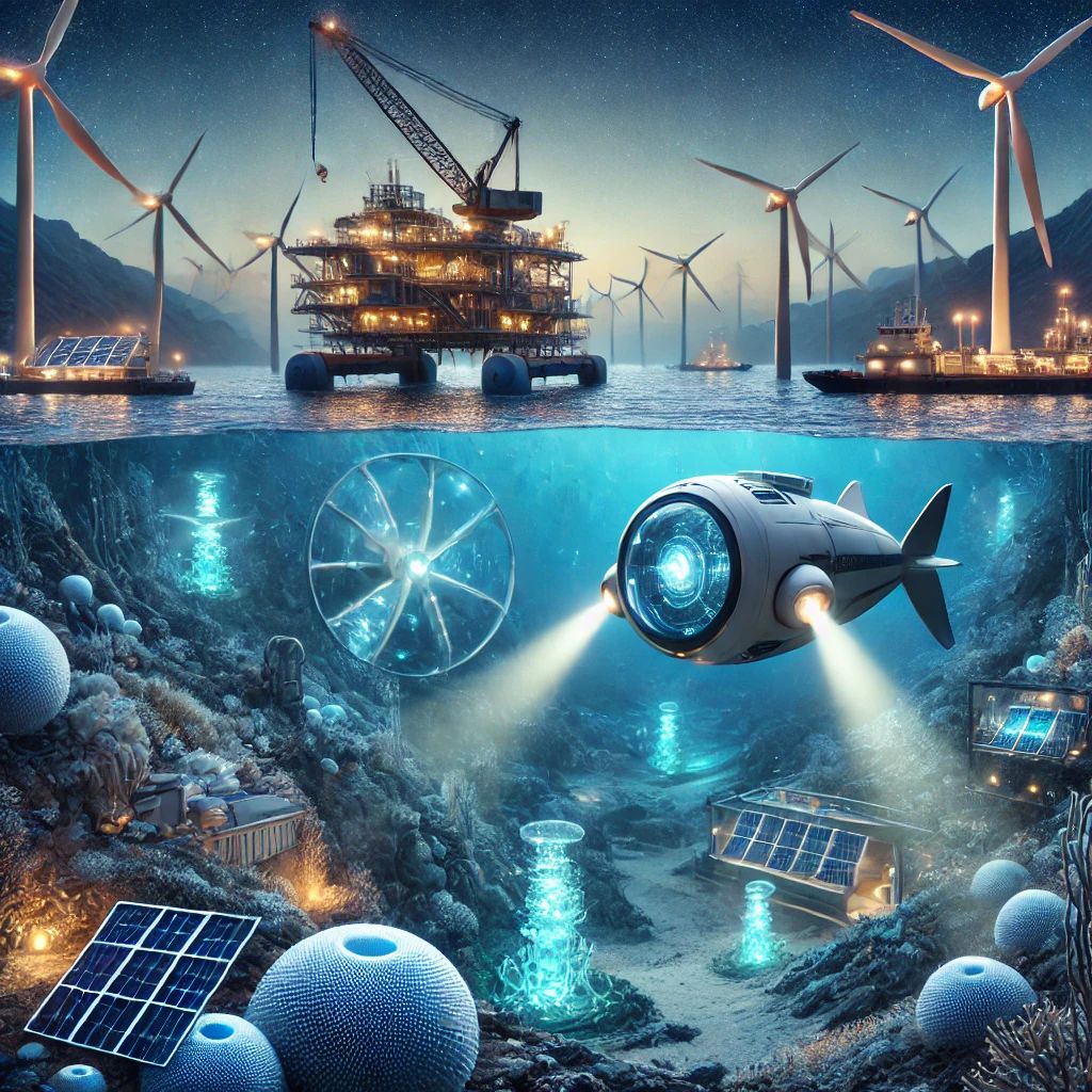 O oceano português não é apenas uma fonte de minerais, mas também um campo de exploração para energias renováveis. Portugal pode tornar-se um líder na energia azul, através de: