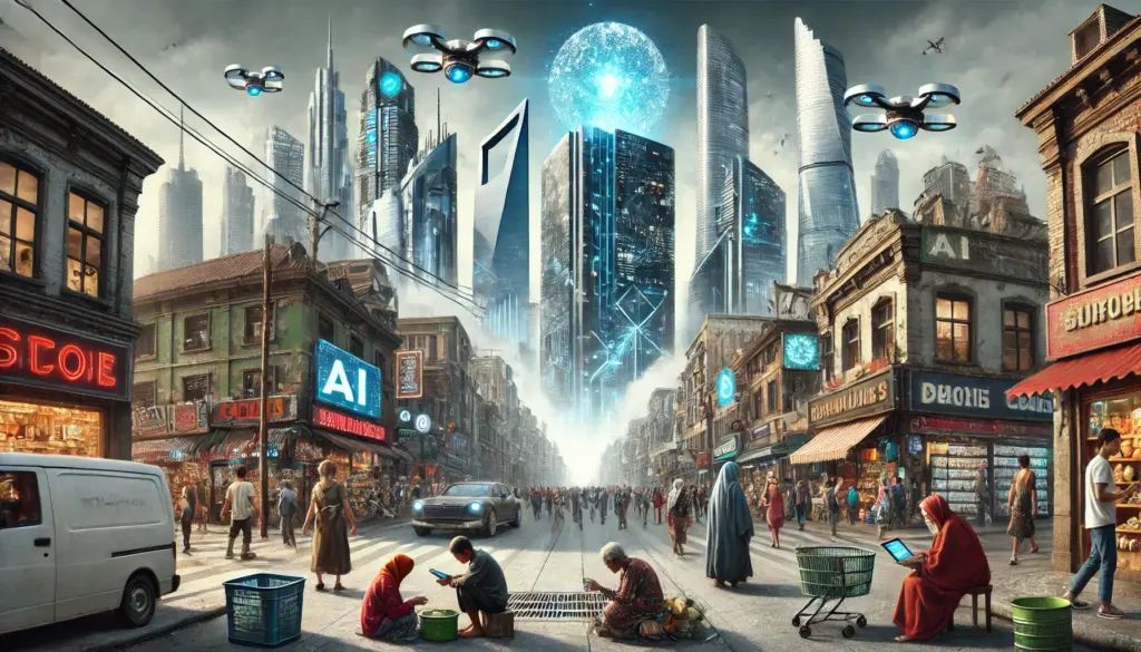 Apesar das conquistas tecnológicas, o mundo continua a enfrentar problemas antigos. As desigualdades sociais persistem, com milhões de pessoas sem acesso a necessidades básicas como saúde e educação. A inteligência artificial e a automação, que poderiam libertar as pessoas do trabalho exaustivo, acabam por ser usadas para maximizar lucros, eliminando empregos e concentrando riqueza.