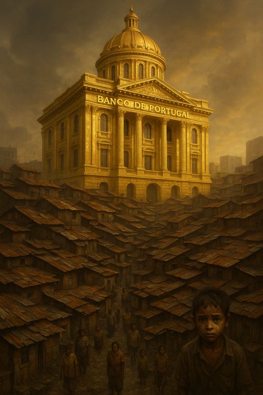 Num país onde as escolas têm janelas partidas, os hospitais faltam médicos e as famílias contam os cêntimos ao balcão do supermercado, o Banco de Portugal ergue um palácio de ouro por 235 milhões de euros.