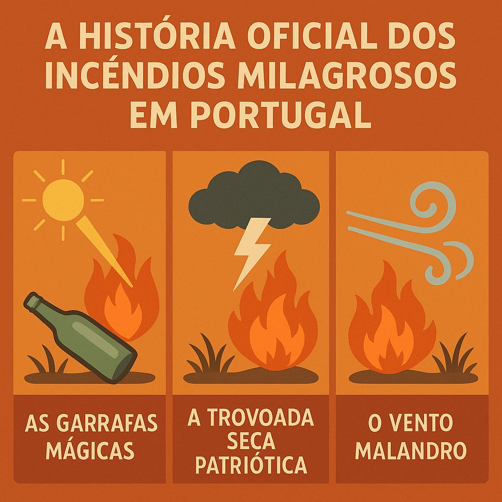 Portugal é um país com uma longa tradição na arte de explicar incêndios de forma… criativa. Não falamos de prevenção ou culpados reais; falamos de narrativas oficiais, fabricadas com o cuidado de um alfaiate e a imaginação de um escritor de contos infantis.