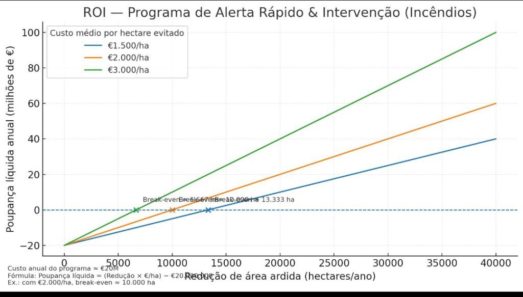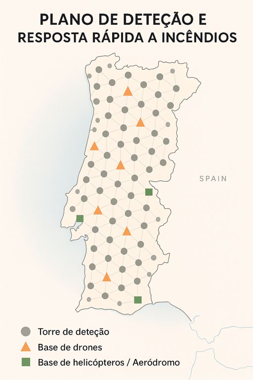 - Custo-benefício: mesmo que o sistema custe 40–50 milhões €/ano, isso é menos do que um único grande incêndio como Pedrógão.