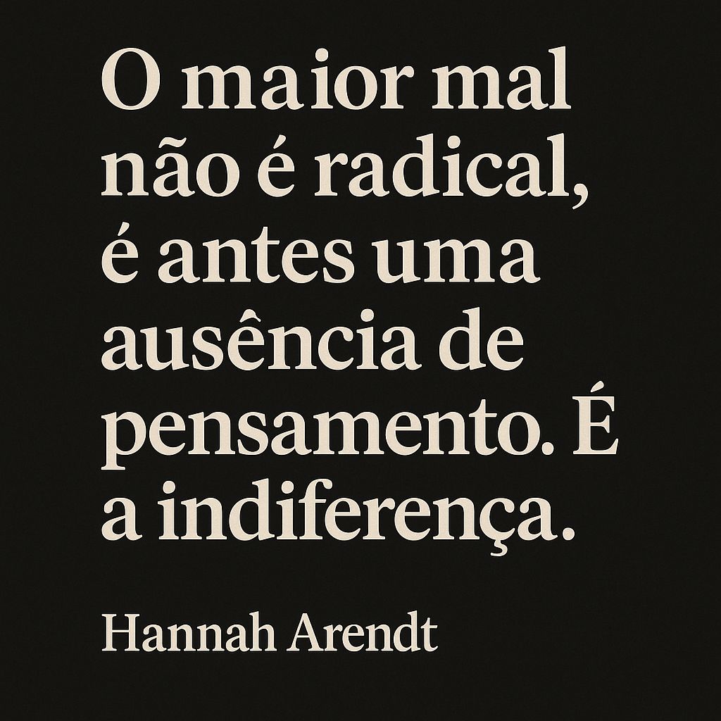Se Hannah Arendt nos alertou para a banalidade do mal, cabe-nos hoje aprofundar a raiz silenciosa que o alimenta: a indiferença.