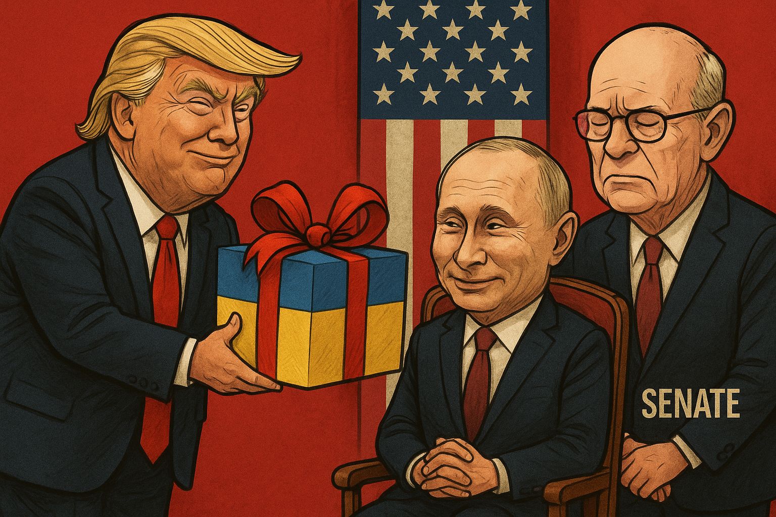 Trump offers a poisoned gift, and the Senate, instead of rejecting it, prefers to remain silent. The result? Putin watches from the balcony, smiling. America, which proclaims itself the bastion of freedom, is willing to sell an entire people to the enemy just to satisfy the whims of a political clown and a cowardly Congress.