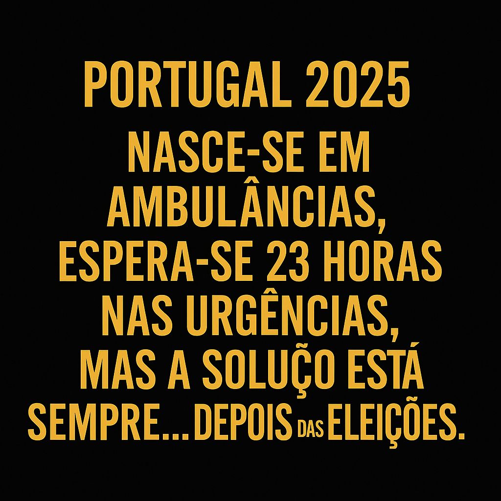 Em Portugal 2025: nasce-se em ambulâncias, espera-se 23 horas nas urgências, mas a solução está sempre… depois das eleições.