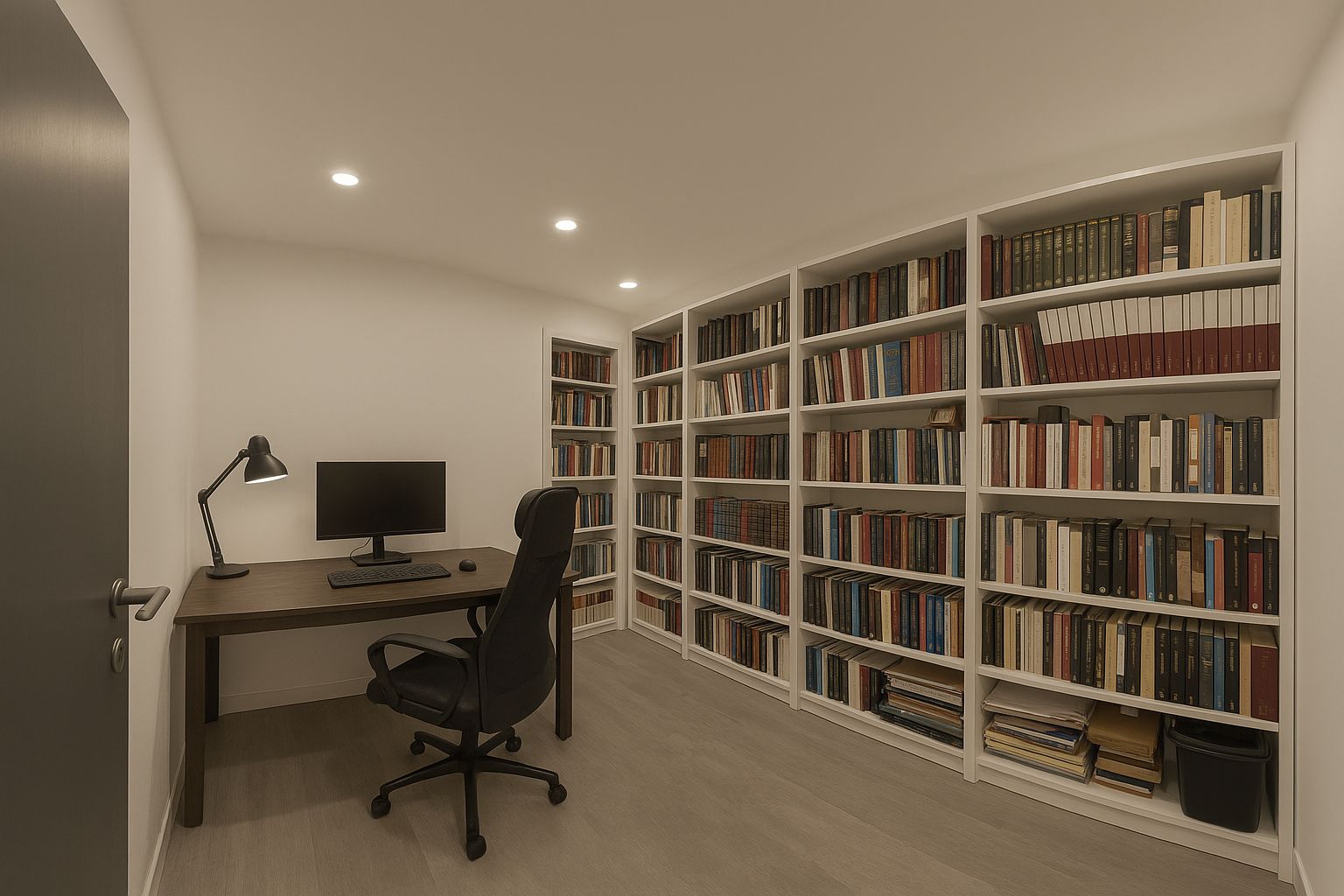 Ali repousam os livros como guardiões de memória. Cada volume é um vestígio de jornadas intelectuais, uma marca de inquietação, uma porta aberta a outros mundos. Quem entra nesse refúgio sente que pisa terreno sagrado — um espaço onde se respira não o pó do papel, mas a respiração das ideias.