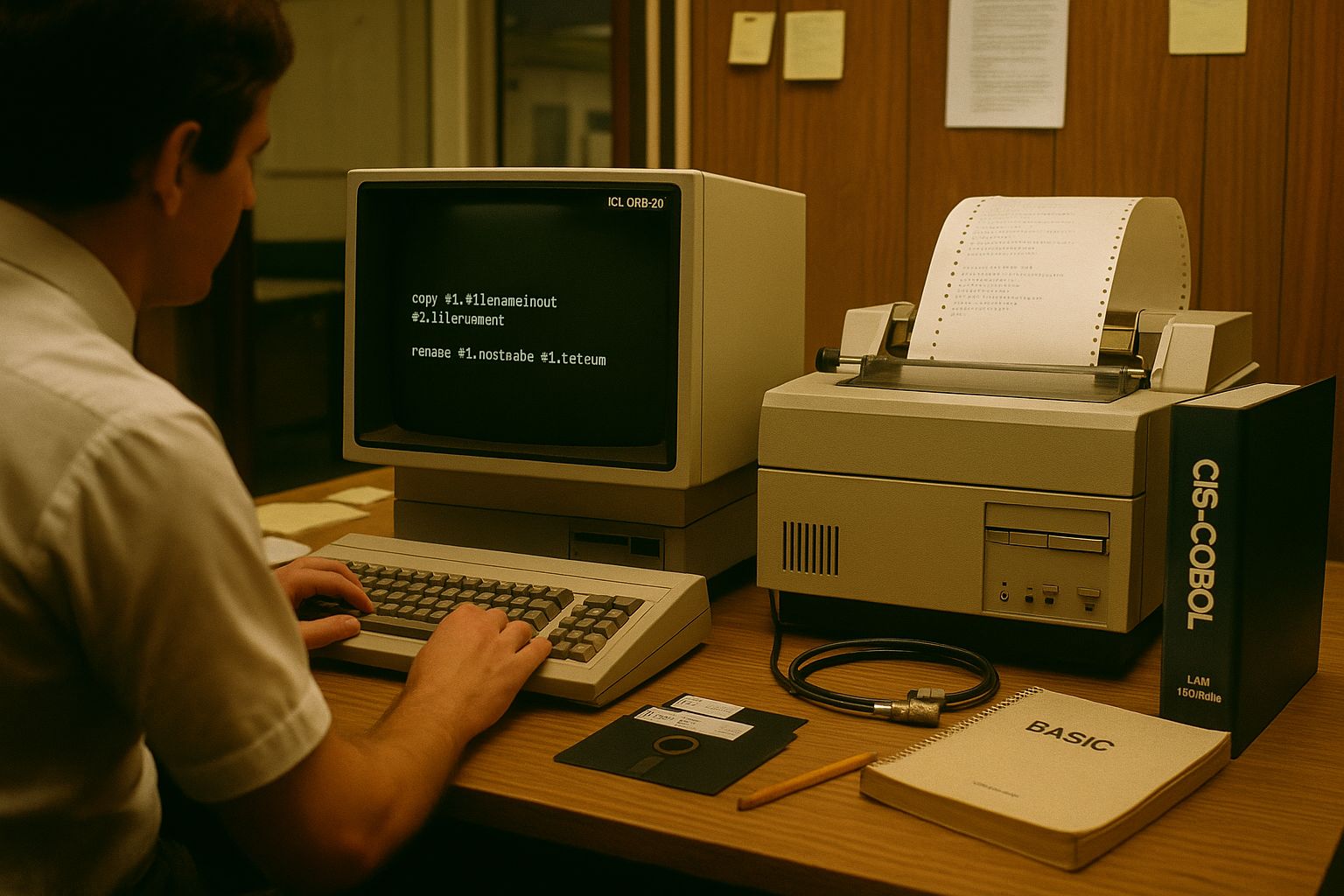 Uma memória técnica pessoal sobre a transição de aplicações de gestão do ICL 1500 para o DRS 20 — e como um pequeno CLI em BASIC ajudou a atravessar a ponte.