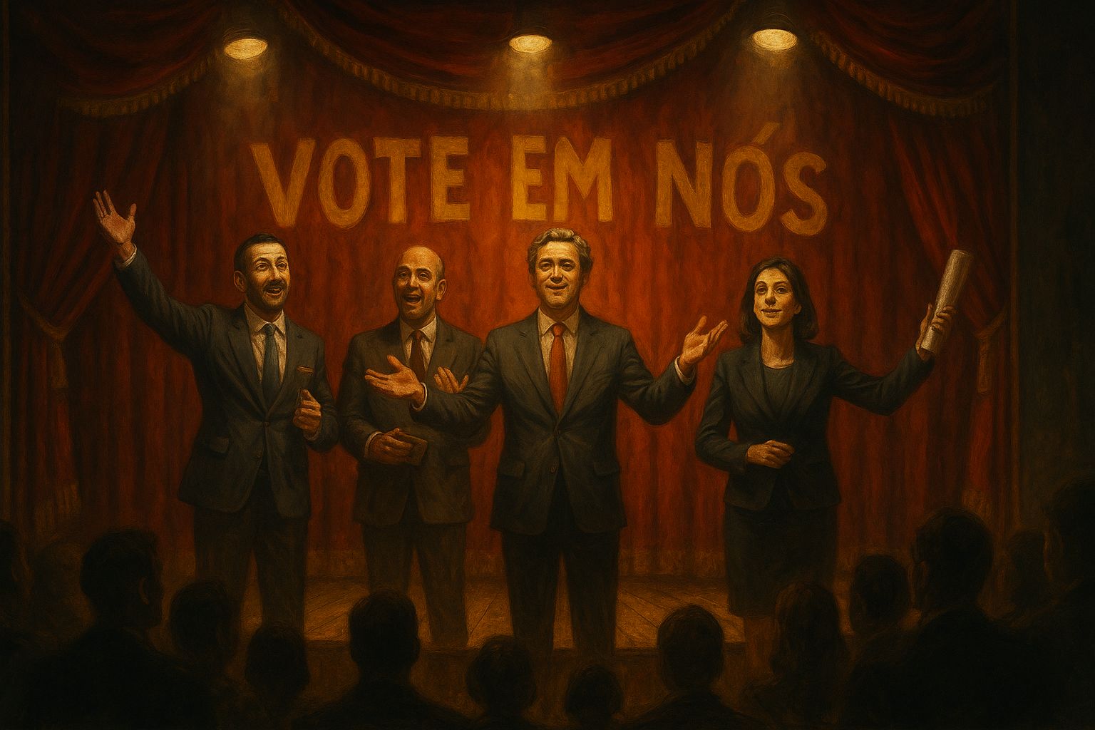 Vivemos num país onde o populismo já não é uma ideologia — é uma técnica de sobrevivência. Cada candidato fala para a câmara fotográfica, não para o povo. As palavras "honestidade", "serviço público", "ética" aparecem nos discursos com a mesma frequência com que desaparecem dos orçamentos camarários.