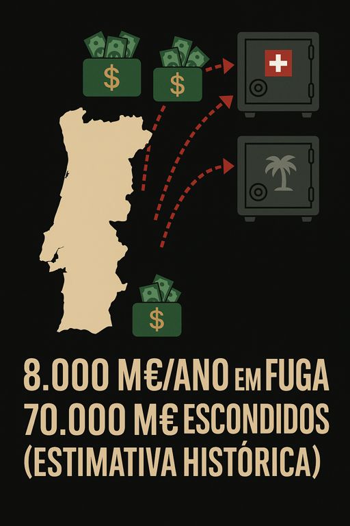 - Histórico (estimativa 2016): ~69 mil M€ de riqueza portuguesa em offshores (≈36 mil M€ na Suíça).