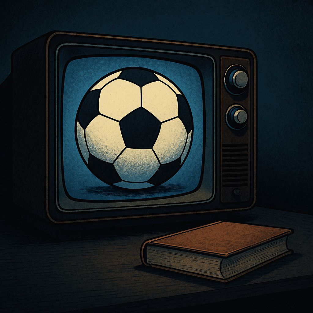 ✒️ Legenda poética: > Entre o golo e o abismo, o povo sonha acordado. O livro espera em silêncio, esquecido pela luz azul. E o país, hipnotizado, confunde ruído com esperança. 📺📖