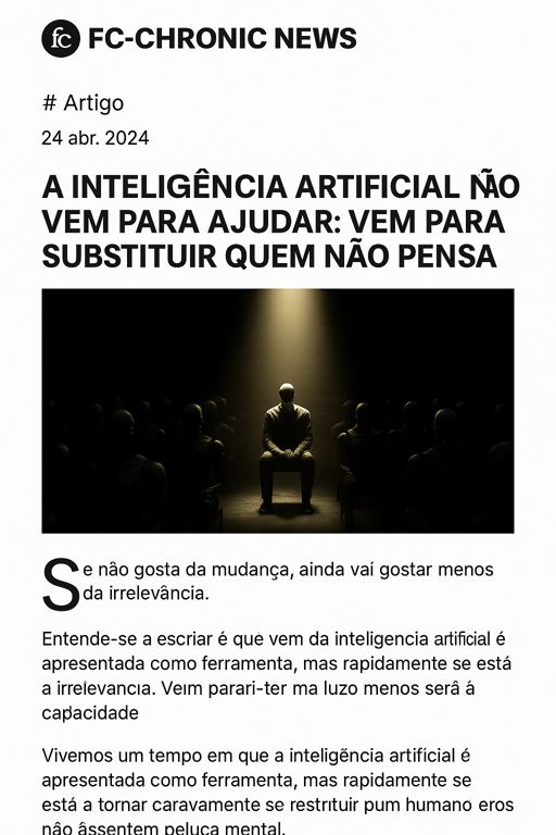 A inteligência artificial não chegou para competir com músculos ou rotinas. Chegou para rivalizar com mentes preguiçosas. Substitui padrões, automatiza tarefas, executa processos e produz textos, imagens e código numa velocidade impossível para o humano médio. Mas há algo que a IA não consegue replicar: o brilho do pensamento crítico. A capacidade de questionar, desconfiar, analisar e interpretar está a tornar-se o recurso mais escasso da humanidade. E quem não o cultivar ficará reduzido a espectador da sua própria obsolescência.A grande separação: entre os que pensam e os que aceitam