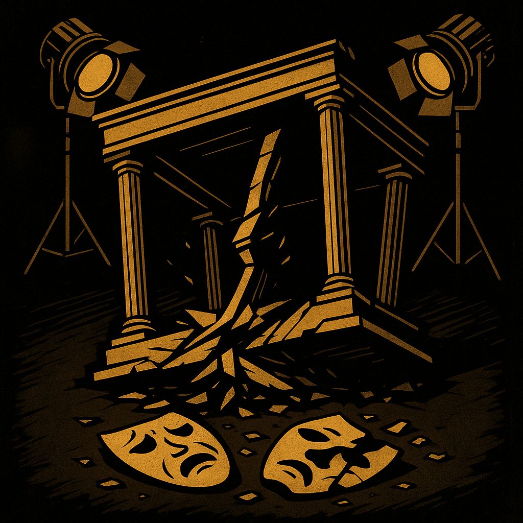 E então o teatro desaba — não por revolta, mas por lucidez.