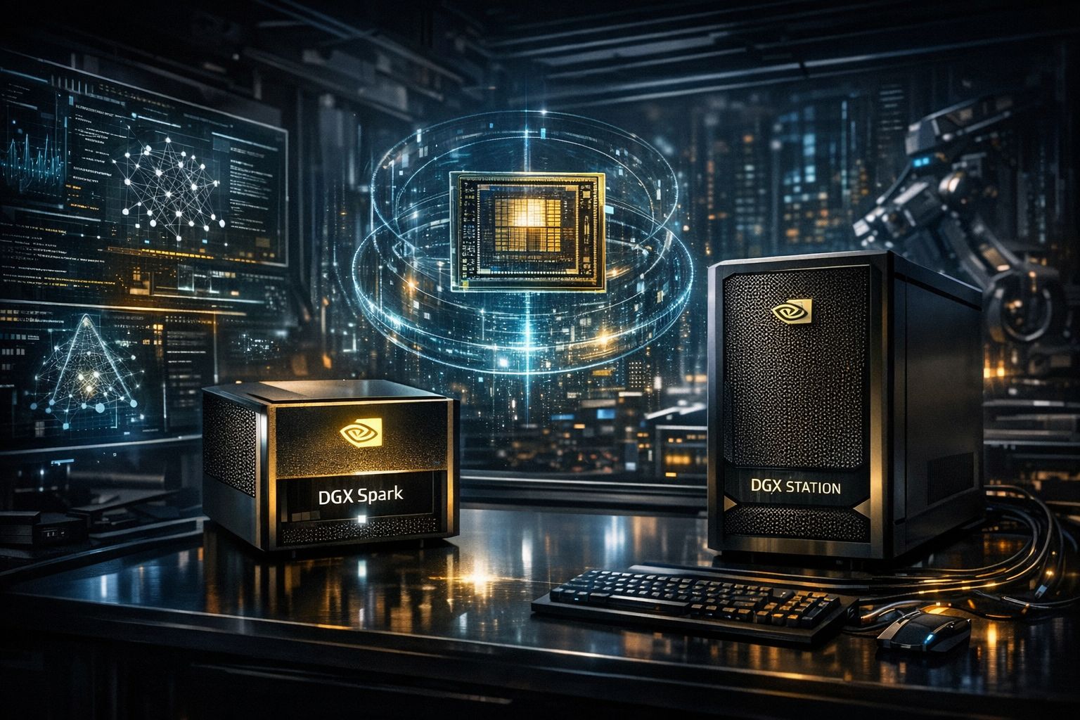 - O que mudou: a NVIDIA está a empurrar a IA de alto desempenho para o "local" — desktop/edge — com linhas DGX mais compactas.