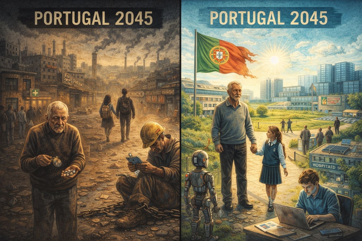 Há um segundo futuro: o país-vitrine. Bonito, arrumado, "instagramável". Com slogans moderníssimos: datacenters, inovação, hubs, startups. Tudo parece progresso — até olharmos para os salários, para a habitação, para a mobilidade social.