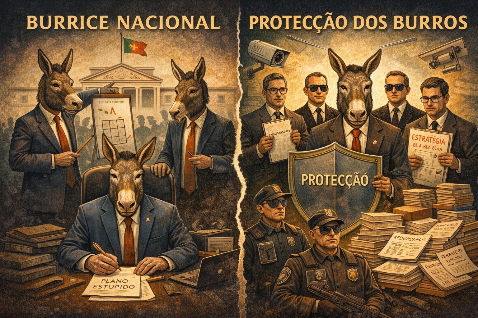 A burrice nacional não é um acaso meteorológico. É uma política de continuidade. Não cai do céu — vem em PDF, com capa institucional, logótipo, assinatura digital e um título em letra grande: "Plano Estratégico para a Transformação da Transformação".