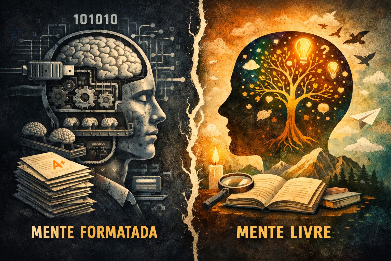 Um sistema educativo pode ser uma oficina de liberdade ou uma fábrica de moldes. Quando se centra em "respostas certas" e "trabalhos bonitos", ele condiciona a mente a uma pergunta única: "O que é que o professor quer que eu escreva?"