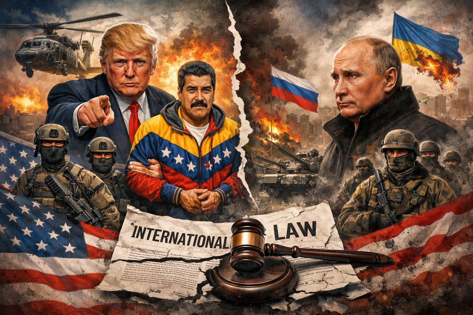 A comparação imediata surge, previsível como chuva em Novembro:"Isto é igual ao que Putin fez na Ucrânia." Igual? Só se a análise política for feita com régua de carpinteiro e miopia ideológica. Uma guerra de anexação, destruição e ocupação prolongada não é o mesmo que uma operação cirúrgica para captura de um indivíduo procurado — a menos que a honestidade intelectual tenha sido declarada baixa médica.