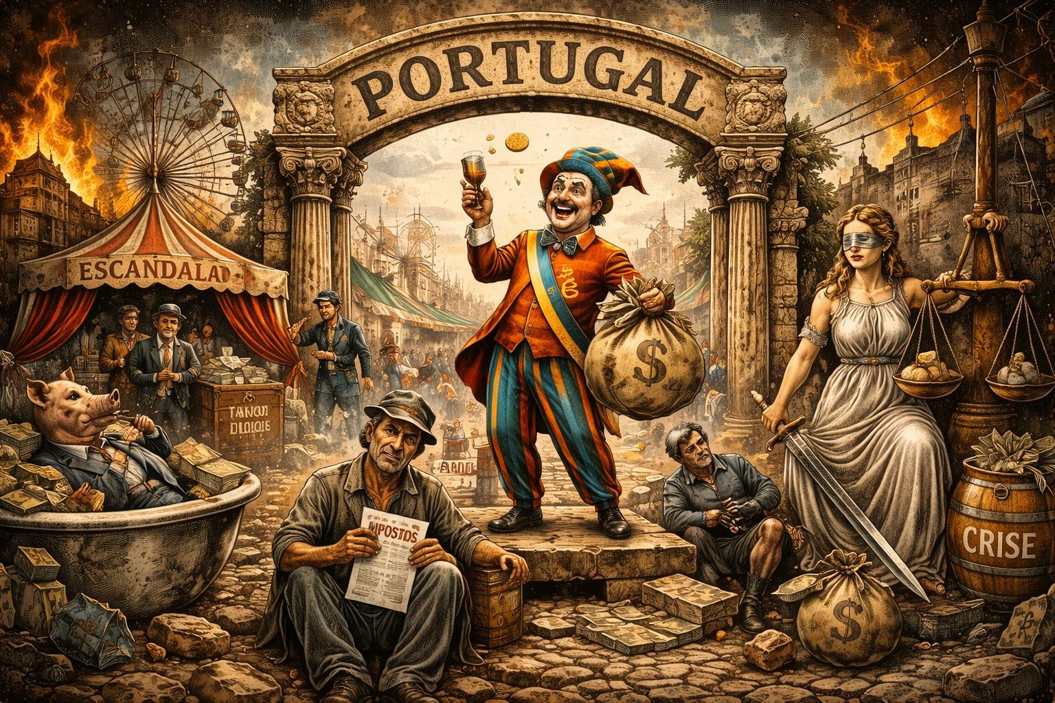 Portugal é um país com um talento extraordinário: consegue ser simultaneamente uma tragédia antiga e uma comédia moderna, mas sem o benefício do intervalo. Há nações que têm comediantes a escrever piadas. Nós temos a realidade a escrever episódios completos — e depois chamamos-lhe "normalidade" para não termos de admitir que o enredo está a ficar caro.