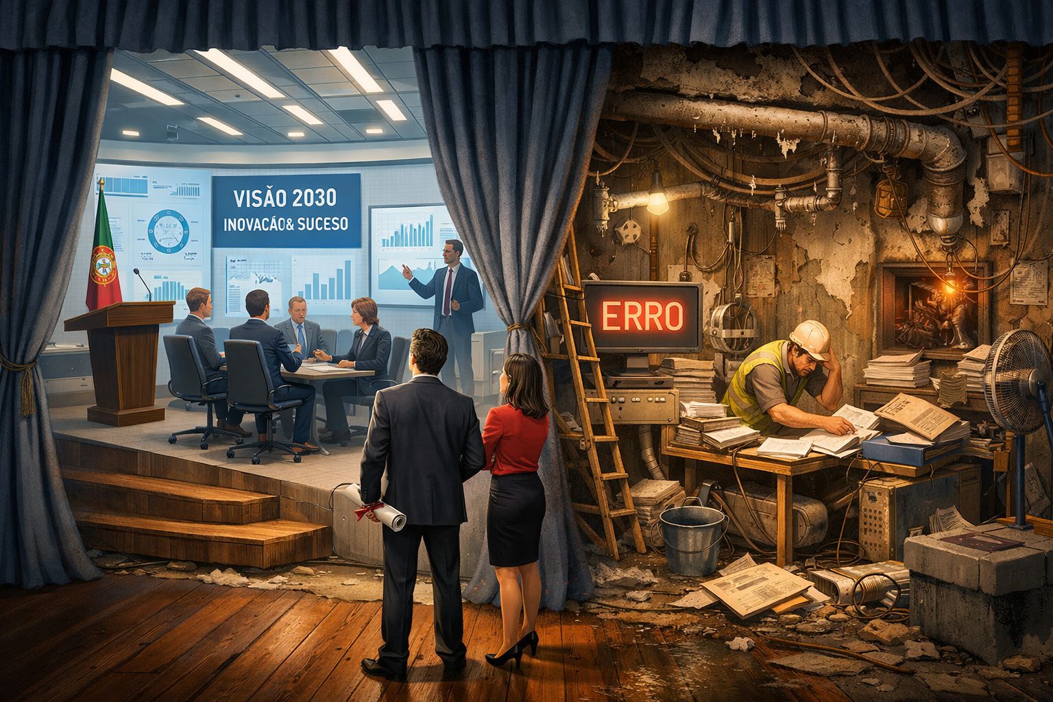 E assim se fabrica a ilusão: uma vitrine impecável… e, atrás do pano, a máquina a ranger. O país não cai por falta de talento — cai porque, demasiadas vezes, a incompetência ocupa o lugar de pilotagem e chama "ruído" a tudo o que é realidade.