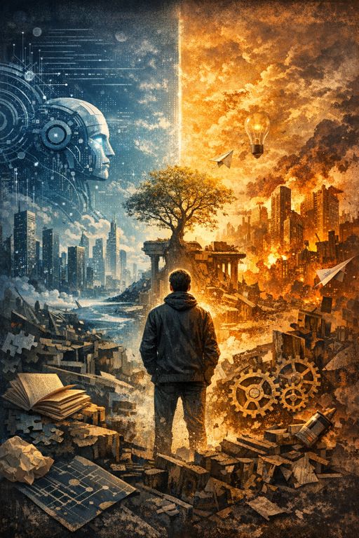 A era da IA não pede humanos "perfeitos". Pede humanos inteiros: capazes de navegar complexidade sem se afogarem, de simplificar sem mentirem, de mudar sem destruir pessoas, e de destruir estruturas apodrecidas para que a vida tenha espaço.